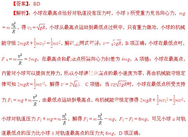 ,СÇòa¶Ô¹ìµÀ×îµÍµãµÄѹÁ¦±ÈСÇòb¶Ô¹ìµÀ×î¸ßµãµÄѹÁ¦´ó6mg