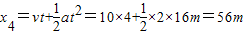 【答案】分析:根据速度时间公式v=v+at,求出4s末的速度.根据位移时间公式