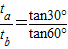 如图所示,两小球a、b从直角三角形斜面的顶端以相同大小的水平速率v向左、向右水平抛出,分别落在两个斜面上,三角形的两底角分别为30°和60°,则两小球a、b运动时间之比为( )A.1: