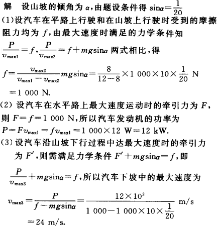 质量m=1 t的小汽车,以额定功率行驶在平直公路上的最大速度是vmax1=12 m/s,开上每前进20 m升高1 m的山坡时最大速度是vmax2=8 m/s.如这两种情况中车所受到的摩擦阻力相等,求: