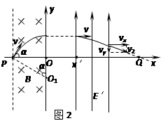轨迹如图1交y轴于C点,过P点作v的垂线交y轴于O1点,![]()