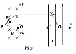 ⑶若只改变上述电场强度的大小,要求带电粒子仍能通过Q点,讨论此电场左边界的横坐标x′与电场强度的大小E′的函数关系。