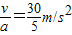 解答:解:108km/h=30m/s,根据速度时间公式得,加速度的大小a=