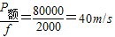 (2)当阻力等于牵引力时,汽车达到最大速度为vm=