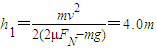 (1)夯杆被滚轮压紧加速上升至与滚轮速度相等时,此时夯的底端离坑底的高度h1=4m.