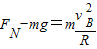 【答案】分析:(1)物体恰好通过最高点,意味着在最高点是轨道对滑块的压力为0,即重力恰好提供向心力,这样我们可以求出vC,在从B到C的过程中质点仅受重力和轨道的支持力,而轨道的支持力不做功,共可以根据动能定理求出物体在B的速度,在B点根据支持力和重力的合力提供向心力得出物体在B点所受的支持力;