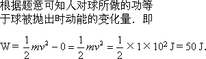 一人用力踢质量为1 kg的皮球,使球由静止以10 m/s的速度飞出.假定人踢球瞬间对球平均作用力是200 N,球在水平方向运动了20 m停止.那么人对球所做的功为