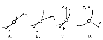 解:汽车行驶时所受阻力 F总与该时刻它的速度方向相反.故D图肯定不对.做曲线运动物体所受合力的方向不仅与其速度方向成一角度,而且总是指向曲线的“内侧”,A,B两图中汽车行驶时所受的“牵引力”是指使汽车前进的动力,牵引力总是与汽车行驶的速度方向相同,当汽车在平直公路上做直线运动时.牵引力就是地面对轮胎的静摩擦力;当汽车在水平弯路上傲曲线运动时,牵引力是地面对轮胎的静摩擦力沿汽车速度方向的一个分力. |