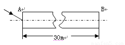 如图所示,折射率为、长为30m的细长透明体放在空气中,光从A端射入沿透明体传播到B端面。求光在透明体中从A端传播到B端所需时间的最小值和最大值。