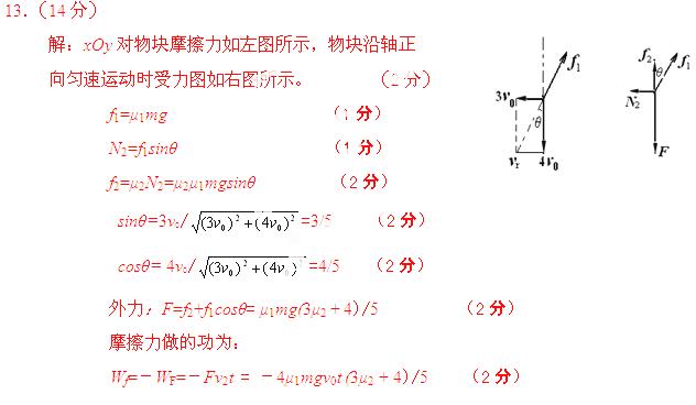(2)若物体沿y方向运动了一段时间t,则在此期间摩擦力所做的功为多少?