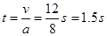 (2)刹车过程所用时间