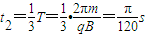 £¨2£©Á£×ÓÔÚµÚ¶þÏóÏÞÒÔO'ΪԲÐÄ×öÔÈËÙÔ²ÖÜÔ˶¯£¬Ô²»¡Ëù¶ÔµÄÔ²ÐĽÇΪ2¦È=120°£¬Ô˶¯Ê±¼ä£º