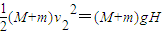 小球和物块相互作用的过程中动量守恒,mv′=(M+m)v2