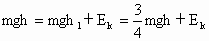 物体从高处自由下落,若底面为参考平面,则下落时间为落地时间的一半时,物体所具有的动能和重力势能之比为( )