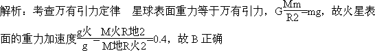 ,地球表面的重力加速度为g,则火星表面的重力加速度约为( )