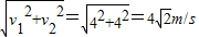 解答:解:若无风,人向东骑行,则相当于刮正东风,而实际风从正北方刮来,所以人感觉的风速是这两个方向上的合成,根据平行四边形定则有,v=