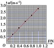 (2)平衡摩擦力后,将5个相同的砝码都放在小车上。挂上砝码盘,然后每次从小车上取一个砝码添加到砝码盘中,测量小车的加速度。小车的加速度a与砝码盘中砝码的总重力F的实验数据如下表: