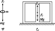 答案:压力为Ff+Mg 解析:环在竖直方向上受力情况如图甲所示,受一个重力,及箱子的杆给它的竖直向上的摩擦力Ff,根据牛顿第三定律,环应给杆一个竖直向下的摩擦力Ff,故箱子竖直方向上受力图如图乙所示,受重力Mg、地面对它的支持力FN及环给它的摩擦力Ff,由于箱子处于平衡状态,可得FN=Ff+Mg 根据牛顿第三定律,箱子给地面的压力大小等于地面给箱子的弹力.