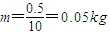 解答:解:大约10个鸡蛋1斤,一个鸡蛋的质量约为