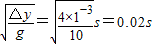 解答:解:根据△y=gT2,解得T=