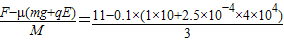 ÈçͼËùʾ£¬³¤L=1.6m£¬ÖÊÁ¿M=3kgµÄľ°å¾²·ÅÔÚ¹â»¬Ë®Æ½ÃæÉÏ£¬ÖÊÁ¿m=1kg¡¢´øµçÁ¿q=+2.5×10-4CµÄС»¬¿é·ÅÔÚľ°åµÄÓÒ¶Ë£¬Ä¾°åºÍÎï¿é¼äµÄ¶¯Ä¦²ÁÒòÊý¦Ì=0.1£¬ËùÔÚ¿Õ¼ä¼ÓÓÐÒ»¸ö·½ÏòÊúÖ±ÏòÏÂÇ¿¶ÈΪE=4.0×104N/CµÄÔÈÇ¿µç³¡£¬ÈçͼËùʾ£¬ÏÖ¶Ôľ°åÊ©¼ÓһˮƽÏòÓÒµÄÀÁ¦F£®È¡g=10m/s2£¬Ç󣺣¨1£©Ê¹Îï¿é²»µôÏÂÈ¥µÄ×î´óÀÁ¦F£»