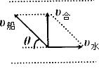 小船参与了两个运动,随水飘流和船在静水中的运动. ∵ 分运动之间是互不干扰的,具有等时的性质,故: ①小船渡河时间等于垂直河岸分运动时间: t=t1= 沿河流方向的位移:s水=v水t=2×50=100(m),即在正对岸下游100m处靠岸. ②要小船垂直过河,即合速度应垂直河岸,如图所示,