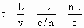 当光从左端射入时的折射角β最大时,时间最长,此时路程 s=L/cosβ,