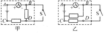 ÈçÏÂͼËùʾ£¬ÏÖÓÐÁ½×èÖµÏàµÈµÄ¶¨Öµµç×èR1¡¢R2£¬Ò»¸öÌṩºã¶¨µçѹµÄµç³Ø×飬µ¼ÏßÈô¸É£¬ÊÔÓÃÒÔÏÂÆ÷²Ä£¬°´Éè¼ÆµÄÁ½ÖÖ²»Í¬·½°¸£¬·Ö±ð½ÓÔÚ¸½Í¼ÖÐA¡¢B¡¢C¡¢DµÄ½ÓÏßÖùÉÏ£¬Ê¹ËüÃǸ÷×é³ÉÒ»¸öÍêÕûµÄµç·£¬²¢Ê¹¼×¡¢ÒÒÁ½Öֵ緷ֱð¶¼ÄÜͬʱÂú×ãÒÔÏÂÈýÏîÒªÇó£º
