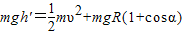 (3)由于h'<h1,故球在还没有到达顶端前即与环脱离,设脱离圆环时的位置半径与竖直方向的夹角为α,选轨道最低点为零势点,由机械能守恒定律及圆周运动知识有: