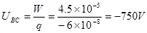 在电场中把一个电荷量为-6×10-8C的点电荷从A点移到B点,电场力做功为-3×10-5J,将此电荷从B 点移到C点,电场力做功为4.5×10-5J,求: