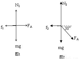 (2)若磁场大小不变,方向与导轨平面成θ=60°角,导体棒受力如图2,根据平衡条件得