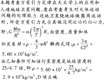天文学家新发现了太阳系外的一颗行星.这颗行星的体积是地球的4.7倍,质量是地球的25倍.已知某一近地卫星绕地球运动的周期约为1.4小时,引力常量G=6.67×10-11 N·m2/kg2,由此估算该行星的平均密度约为