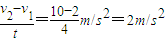一辆汽车在4s内做匀加速直线运动,初速为2m/s,末速为10m/s,在这段时间内( )A.汽车的加速度为4m/s2