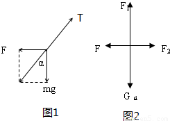 ½â£ºÒÔ½áµãOΪÑо¿¶ÔÏ󣬷ÖÎöÊÜÁ¦Çé¿öÈçͼ1Ëùʾ£¬ÉèÉþ×ÓµÄÀÁ¦TÓëÊúÖ±·½ÏòµÄ¼Ð½Ç¦Á£¬ÔòÓÉÆ½ºâÌõ¼þµÃ