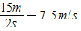 解答:解:前2s内的位移为5m+10m=15m;故前2s内的平均速度为: