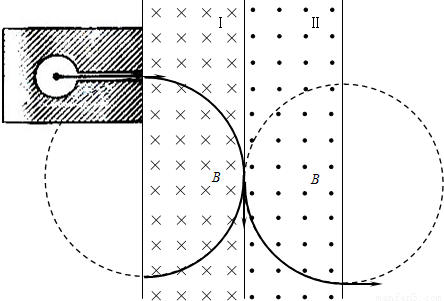 £¨3£©ÔÚÉÏÊöÌõ¼þÏ£¬ÒªÇóËÙÂÊÔÚÇø¼äv1£¼v£¼v2µÄ¦ÂÁ£×ÓÀë¿ªÇøÓò¢òʱµÄλÖúͷ½Ïò£¬ÏÈÇó³öËÙ¶ÈΪv2µÄ¦ÂµÄÁ£×ÓËù¶ÔÓ¦µÄÔ²ÖÜÔ˶¯°ë¾¶