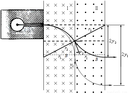 »³öËÙÂÊ·Ö±ðΪv1ºÍv2µÄÁ£×ÓÀë¿ªÇøÓò¢òµÄ¹ì¼£Èçͼ