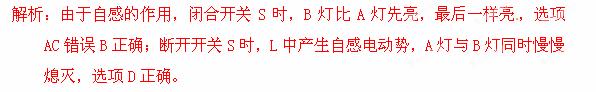 (2013深圳市南山区期末)如图,A、B是相同的白炽灯,L是自感系数很大、电阻可忽略的自感线圈。下面说法正确的是