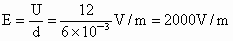 如图所示,将两个平行金属板接在电压为12V的电源上,B板接地,A、B相距6mm,c点距A板1mm,d点距B板2mm,则A、B板间场强大小为_______,c点电势为_______,d点电势为_______.