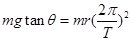 角,求小球做匀速圆周运动的周期及细绳对小球的拉力。![]()