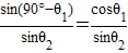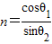 (2)入射角等于90°-θ1,折射角等于θ2,则玻璃的折射率n=