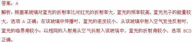 (2013北京丰台期末)已知某玻璃对蓝光的折射率比对红光的折射率大,则
