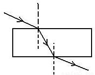【答案】分析:光由空气通过玻璃砖要发生两次折射,第一次由空气斜射进入玻璃砖,第二次由玻璃砖斜射再进入空气,两次均符合折射定律.