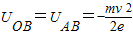 如图所示,α 粒子从A点以v的速度沿垂直电场线方向的直线AO方向射入电场,由B点飞出匀强电场时速度方向与AO方向成.已知α 粒子质量为m,电荷量为2e.求OB两点间电势差.
