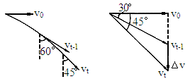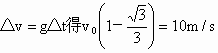 由于平抛运动是匀变速运动,速度改变量的方向竖直向下,大小为△ v=g△t,用矢量三角形法求解.分析物体运动如图所示.