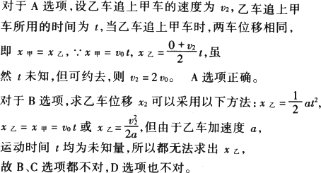 汽车甲沿着平直的公路以速度v0做匀速直线运动,当它经过某处的同时,该处有汽车乙开始作初速度为零的匀加速直线运动去追赶甲车,根据已知条件( )