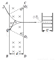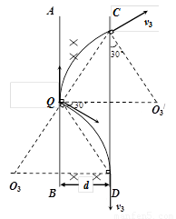 倍,并可以从Q点沿纸面各个方向射入磁场,则粒子能打到CD边界的范围?