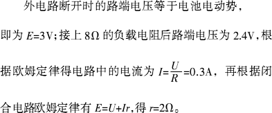 3 V,接上8 Ω的负载电阻后路端电压降为2.4 V,则可以判定电池的电动势E和内阻r为A.
