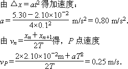 研究小车的匀变速运动,记录纸带如图所示,图中两计数点间有四个点未画出.已知打点计时器所用电源的频率为50 Hz,则小车运动的加速度a=________m/s2,打P点时小车运动的v=________m/s.(结果保留2位有效数字)