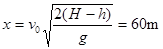 (1)若H=80m,h=60m,水炮出水速度v0=30m/s,求水炮与起火建筑物之间的水平距离x;